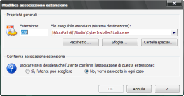 If you selected "Yes, you can choose the extension will be associated only after asking the user and of course if they said yes to. Otherwise the extension will not be associated. If you selected the option "No, I will be bound in any case, the extension will be associated without prompting the user. It is recommended to ask the user for all cases of known extensions (BMP, DOC, TXT , DAT, MP3, etc..), which could replace a previous association with an application already installed on your system. For proprietary extensions instead (.CSP,.MyProject, etc.). You can not annoy the user with the request for confirmation.